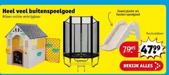 Neem een kijkje voor de goedkoopste producten tussen alle aanbiedingen! Als je wilt weten of Kruidvat de hoogste korting voor Heel veel buitenspeelgoed heeft, vergelijk het op de Topic page of met andere winkels.
