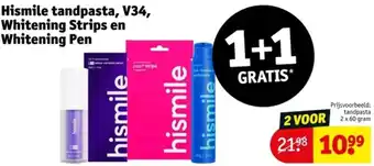Hismile tandpasta, V34, Whitening Strips en Whitening Pen aanbieding bij Kruidvat