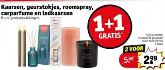 Kaarsen, geurstokjes, roomspray, carparfume en ledkaarsen korting bij Kruidvat