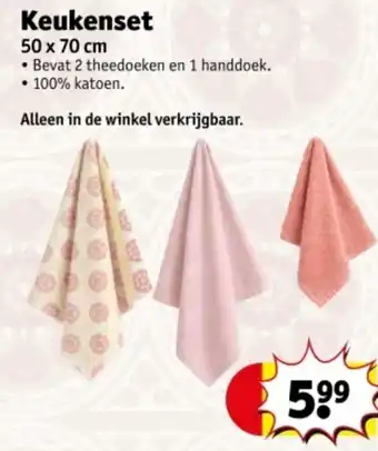 De prijs van de Keukenset kan ook teruggevonden worden hierboven op de pagina, samen met de datum van wanneer de aanbieding beschikbaar is. Ook kun je de prijzen in de huidige Kruidvat folder of op de Kruidvat website controleren. De aanbiedingen verzekeren je van het kopen van de Kruidvat producten voor de laagste prijs.