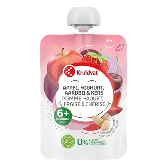 Koop Kruidvat 6+M Bio Appel, Yoghurt, Aardbei & Kers Knijpzakje komende week met korting