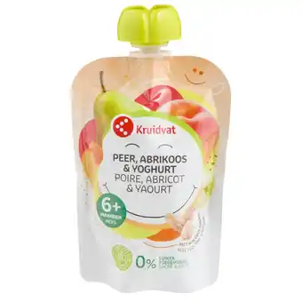 Kruidvat 6+M Bio Yoghurt Abrikoos Peer Haver Knijpfruit 90g 3+1 gratis