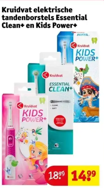 Kruidvat Elektrische Tandenborstels Essential Clean+ en Kids Power+ aanbieding bij Kruidvat