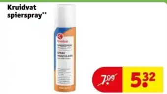 De prijs van de Kruidvat spierspray kan ook teruggevonden worden hierboven op de pagina, samen met de datum van wanneer de aanbieding beschikbaar is. Ook kun je de prijzen in de huidige Kruidvat folder of op de Kruidvat website controleren. De aanbiedingen verzekeren je van het kopen van de Kruidvat producten voor de laagste prijs.