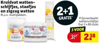 Kruidvat wattenschijfjes, staafjes en zigzag watten 2+1 GRATIS