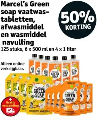 Marcel's Green soap vaatwastabletten, afwasmiddel en wasmiddel navulling aanbieding bij Kruidvat