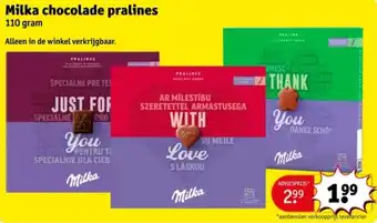 Kruidvat biedt naast de Milka chocolade pralines een ruime collectie producten aan. Houd de wekelijkse Kruidvat folder in de gaten om de beste aanbiedingen en acties te vinden. Naast Milka chocolade pralines, kunt u ook de volgende aanbiedingen vinden: Milka chocolade pralines, Milka Thank you pralines & Milka I love pralines.