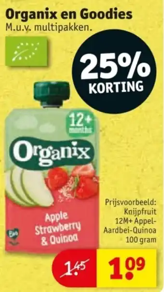 Kruidvat biedt naast de Organix en Goodies een ruime collectie producten aan. Houd de wekelijkse Kruidvat folder in de gaten om de beste aanbiedingen en acties te vinden. Naast Organix en Goodies, kunt u ook de volgende aanbiedingen vinden: Organix en Goodies & Snacks, Organix knijpfruit & Organix Boerderijdieren koekjes 12m+.