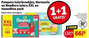 Pampers luierbroekjes, Harmonie en NewBorn luiers XXL en maandbox pack aanbieding bij Kruidvat