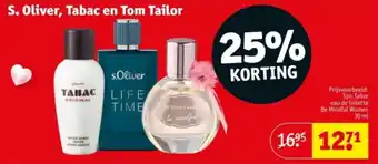 De prijs van de S. Oliver, Tabac en Tom Tailor kan ook teruggevonden worden hierboven op de pagina, samen met de datum van wanneer de aanbieding beschikbaar is. Ook kun je de prijzen in de huidige Kruidvat folder of op de Kruidvat website controleren. De aanbiedingen verzekeren je van het kopen van de Kruidvat producten voor de laagste prijs.