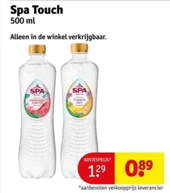De prijs van de Spa Touch kan ook teruggevonden worden hierboven op de pagina, samen met de datum van wanneer de aanbieding beschikbaar is. Ook kun je de prijzen in de huidige Kruidvat folder of op de Kruidvat website controleren. De aanbiedingen verzekeren je van het kopen van de Kruidvat producten voor de laagste prijs.