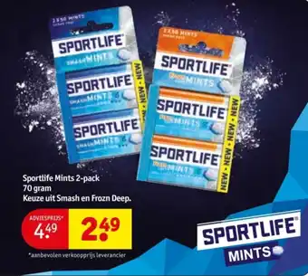 Sportlife Mints zijn verfrissende suikervrije mints in handig 2-pack formaat van 70 gram. Kies uit de smaken Smash en Frozn Deep voor een intense smaakbeleving. De adviesprijs van deze Sportlife Mints is 4.49, maar de aanbevolen verkoopprijs van de leverancier is slechts 2.49. Geniet van de nieuwe Smashmints van Sportlife, de perfecte opfrisser voor onderweg of na het sporten. Met de unieke formule van Sportlife blijft je adem langdurig fris. Bestel nu de Sportlife Mints 2-pack en ervaar zelf de krachtige smaak van deze FAMINTS. Probeer de NEW NEW NEW-NEW Sportlife Mints en ontdek de verfrissende sensatie van deze SMASHMINTS S.