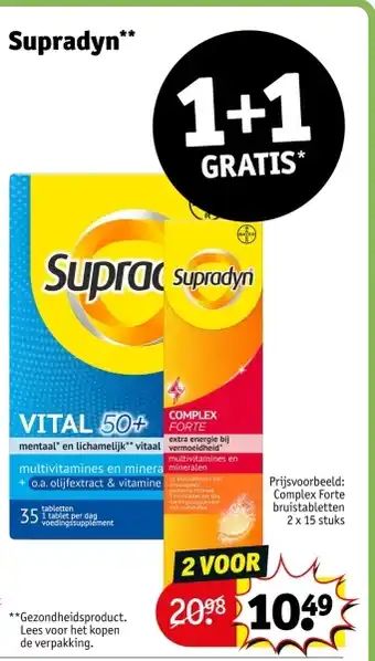 Kruidvat biedt naast de Supradyn een ruime collectie producten aan. Houd de wekelijkse Kruidvat folder in de gaten om de beste aanbiedingen en acties te vinden. Naast Supradyn, kunt u ook de volgende aanbiedingen vinden: Supradyn, Supradyn & Supradyn Vital 50+ Tabletten.