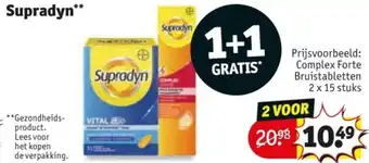 Kruidvat biedt naast de Supradyn een ruime collectie producten aan. Houd de wekelijkse Kruidvat folder in de gaten om de beste aanbiedingen en acties te vinden. Naast Supradyn, kunt u ook de volgende aanbiedingen vinden: Supradyn complex bruistabletten 15tb, Supradyn vital 50+ tabletten 95tb & Supradyn vital 50+ tabletten 35tb.