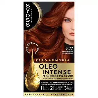 Nu in de aanbieding bij Kruidvat: Syoss Oleo Intense 5-77 Koperrood Permanente Haarkleuring✅ Actie geldig van 23-02 t/m 8-03.