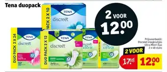 De aanbieding is verkrijgbaar in verschillende winkels, bekijk alle producten om de goedkoopste Tena duopack te krijgen. Als je graag wilt kijken of het artikel met meer korting te koop is in een andere winkel, bekijk de categorie 'Drogist en Parfumerie'. Wellicht vind je deze aanbiedingen ook interessant: Tena duopack, TENA Discreet Normal Verbanden Duopack 2x12 stuks & TENA Discreet Extra Verbanden Duopack 2x10 stuks.