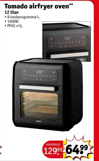 Deze Tomado airfryer oven is nu in de aanbieding bij Kruidvat. Op deze pagina vind je alle informatie over actuele prijzen, actievoorwaarden en looptijd. Vergelijk ook andere relevante aanbiedingen en acties rondom Tomado airfryer oven, zodat je altijd de slimste keuze maakt. De aanbieding loopt van 06-01-2026 tot en met 11-01-2026. Is de actie verlopen? Geen probleem – vergelijkbare deals vind je altijd via deze pagina. Volg eventueel de productcategorie om automatisch op de hoogte te blijven van nieuwe aanbiedingen of prijsdalingen voor Tomado airfryer oven.Veelgestelde vragen over Tomado airfryer oven