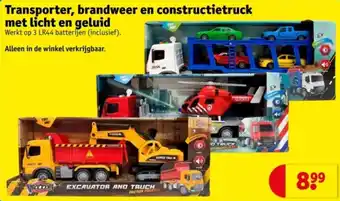 Transporter, brandweer en constructietruck met licht en geluid aanbieding en online acties bij Kruidvat