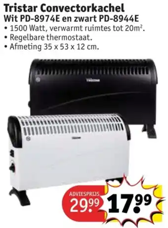 Koop Tristar Convectorkachel Wit PD-8974E en zwart PD-8944E komende week met korting