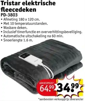 Tristar elektrische fleecedeken PD-3803 aanbieding en online acties bij Kruidvat