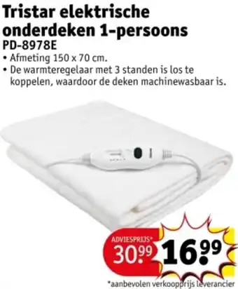 Tristar elektrische onderdeken 1-persoons PD-8978E aanbieding bij Kruidvat