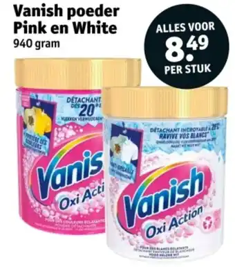 De aanbieding is verkrijgbaar in verschillende winkels, bekijk alle producten om de goedkoopste Vanish poeder Pink en White te krijgen. Als je graag wilt kijken of het artikel met meer korting te koop is in een andere winkel, bekijk de categorie 'Drogist en Parfumerie'. Wellicht vind je deze aanbiedingen ook interessant: Vanish Vlekverwijderaar poeder voor witte was, Vanish Vlekverwijderaar poeder gekleurde was & Vanish Oxi Action Wasbooster Poeder.