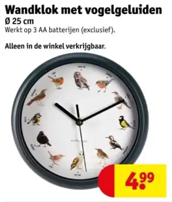 Wandklok met vogelgeluiden korting bij Kruidvat