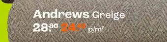 De prijs van de Andrews Greige kan ook teruggevonden worden hierboven op de pagina, samen met de datum van wanneer de aanbieding beschikbaar is. Ook kun je de prijzen in de huidige Kwantum folder of op de Kwantum website controleren. De aanbiedingen verzekeren je van het kopen van de Kwantum producten voor de laagste prijs.