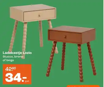 Het Ladekastje Lozio Stucco is een stijlvolle toevoeging aan elk interieur. Verkrijgbaar in de kleuren brons of beige, past dit kastje perfect bij diverse kleurenschema's. Met een prijs van slechts 42.50 per stuk is dit ladekastje een betaalbare opbergoplossing voor al je spullen. De compacte afmetingen van 34 cm hoog maken het ideaal voor kleinere ruimtes, zoals slaapkamers of kantoren. De lades bieden voldoende ruimte om kleding, accessoires of documenten netjes op te bergen. Bekijk alle ladekastjes in ons assortiment en kies voor de Lozio Stucco voor een combinatie van functionaliteit en elegantie. Bestel vandaag nog en geef je interieur een upgrade!
