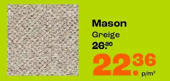 Kwantum biedt naast de Mason een ruime collectie producten aan. Houd de wekelijkse Kwantum folder in de gaten om de beste aanbiedingen en acties te vinden. Naast Mason, kunt u ook de volgende aanbiedingen vinden: Tapijt Mason, aanbieding 2 & aanbieding 3.