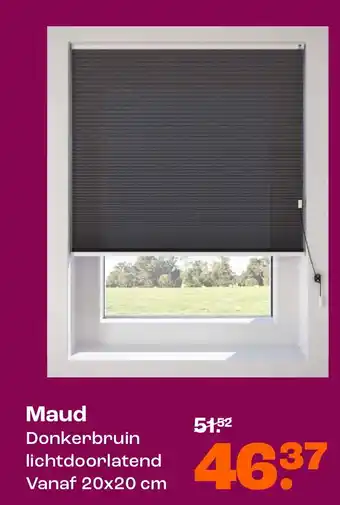 De Maud is een prachtige donkerbruine lichtdoorlatende raamdecoratie, verkrijgbaar vanaf 20x20 cm. Met zijn elegante uitstraling voegt de Maud een vleugje stijl toe aan elk interieur. De subtiele tint van donkerbruin zorgt voor een warme en gezellige sfeer in de ruimte. De Maud is gemaakt van hoogwaardige materialen en is eenvoudig te installeren. Of je nu op zoek bent naar meer privacy of gewoon wat extra sfeer wilt creëren, de Maud is de perfecte keuze. Met een prijs van slechts 51.52 is de Maud niet alleen stijlvol, maar ook betaalbaar. Verander de uitstraling van je kamer en geniet van de vele voordelen van de Maud raamdecoratie.