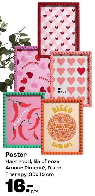 Hart rood, lila of roze, Amour Pimenté, Disco Therapy, 30x40 cm