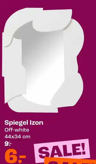 De prijs van de Spiegel Izon kan ook teruggevonden worden hierboven op de pagina, samen met de datum van wanneer de aanbieding beschikbaar is. Ook kun je de prijzen in de huidige Kwantum folder of op de Kwantum website controleren. De aanbiedingen verzekeren je van het kopen van de Kwantum producten voor de laagste prijs.