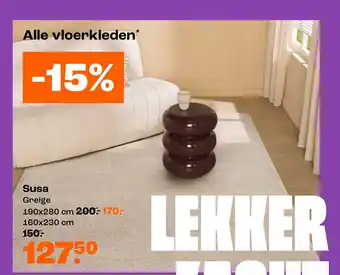 Kwantum biedt naast de Susa een ruime collectie producten aan. Houd de wekelijkse Kwantum folder in de gaten om de beste aanbiedingen en acties te vinden. Naast Susa, kunt u ook de volgende aanbiedingen vinden: Vloerkleden Susa, Manifesto Lazy Susan draaiplateau ø 55cm & Manifesto Lazy Susan draaiplateau ø 65cm.