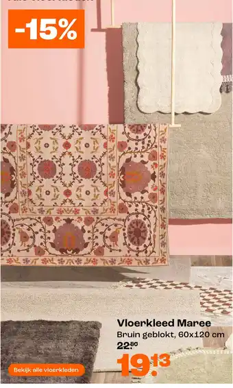Bekijk alle vloerkleden en profiteer van 15% korting op het Vloerkleed Maree in de kleur bruin geblokt. Dit vloerkleed van 60x120 cm is nu verkrijgbaar voor slechts 22,50. De Maree collectie is geïnspireerd op de klassieke designs uit 1913 en brengt een stijlvolle en warme sfeer in elke ruimte. Het vloerkleed is gemaakt van hoogwaardige materialen en is zowel duurzaam als comfortabel. De bruine blokken zorgen voor een speels en tijdloos effect, waardoor het perfect past bij zowel moderne als klassieke interieurs. Haal nu dit prachtige Vloerkleed Maree in huis en geef je kamer een instant upgrade!