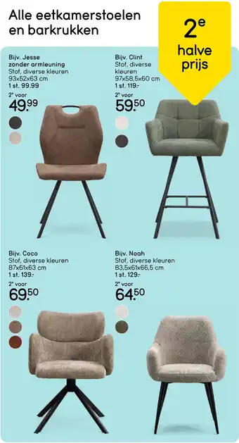 Alle eetkamerstoelen en barkrukken 2e halve prijs