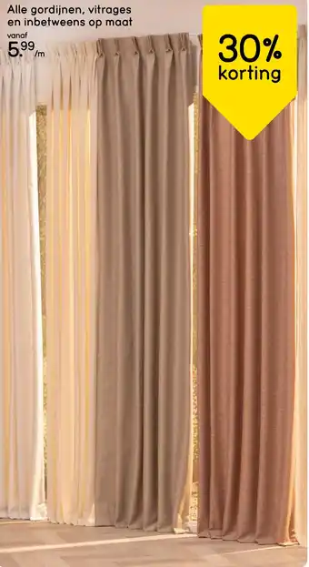 Alle gordijnen, vitrages en inbetweens op maat met 30% korting