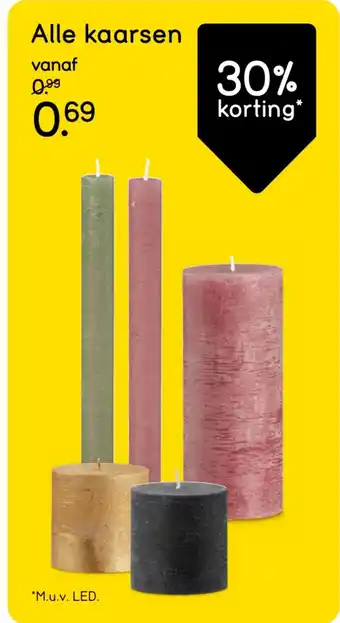 Alle kaarsen vanaf €0.99, €0.69, 30% korting