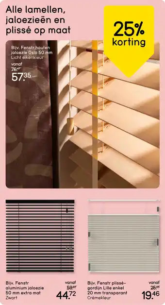 Alle lamellen, jaloezieën en plissé op maat 25% korting aanbieding bij Leen Bakker
