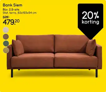 Bank Siem 2,5-zits in terra stof met 20% korting