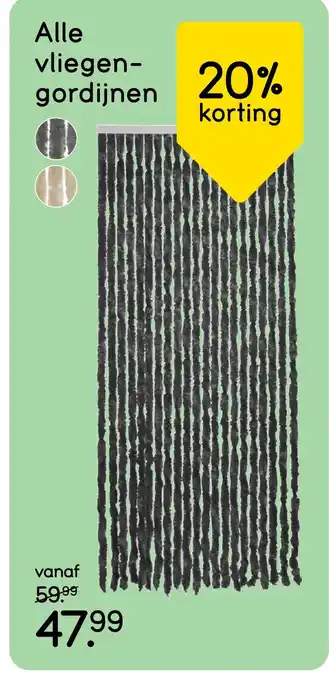 Leen Bakker biedt naast de Bekijk Alle vliegengordijnen [link] een ruime collectie producten aan. Houd de wekelijkse Leen Bakker folder in de gaten om de beste aanbiedingen en acties te vinden. Naast Bekijk Alle vliegengordijnen [link], kunt u ook de volgende aanbiedingen vinden: Alle vliegengordijnen, Bekijk alle tuinaanbiedingen[link] & Bekijk alle superdeals[link].