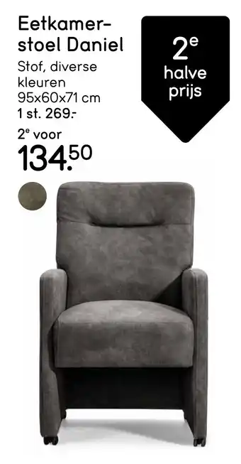 De prijs van de Eetkamer- stoel Daniel kan ook teruggevonden worden hierboven op de pagina, samen met de datum van wanneer de aanbieding beschikbaar is. Ook kun je de prijzen in de huidige Leen Bakker folder of op de Leen Bakker website controleren. De aanbiedingen verzekeren je van het kopen van de Leen Bakker producten voor de laagste prijs.