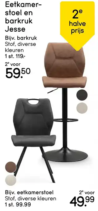 Nu in de aanbieding bij Leen Bakker: Eetkamer stoel en barkruk Jesse✅ Actie geldig van 9-02 t/m 15-02.