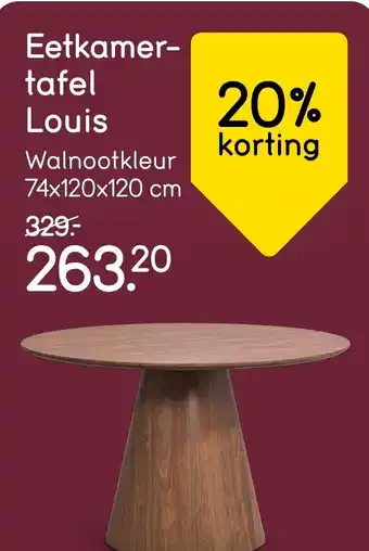 Eetkamertafel Louis in Walnootkleur met 20% korting voor slechts 263.20