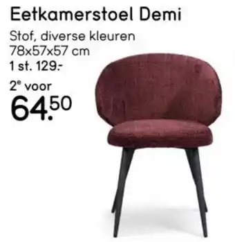 De aanbieding is verkrijgbaar in verschillende winkels, bekijk alle producten om de goedkoopste Eetkamerstoel Demi te krijgen. Als je graag wilt kijken of het artikel met meer korting te koop is in een andere winkel, bekijk de categorie 'Wonen'. Wellicht vind je deze aanbiedingen ook interessant: Eetkamerstoel Mogadishu, Eetkamerstoel Sporo & Eetkamerstoel Avignon.
