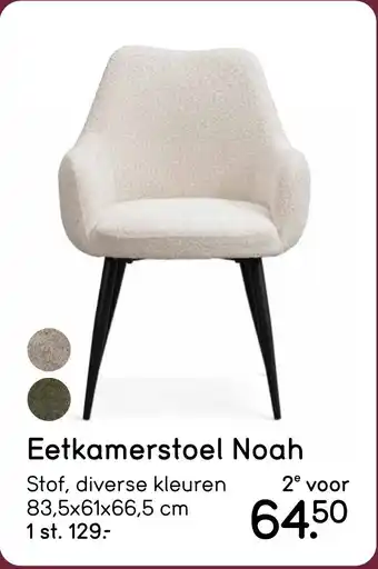 De aanbieding is verkrijgbaar in verschillende winkels, bekijk alle producten om de goedkoopste Eetkamerstoel Noah te krijgen. Als je graag wilt kijken of het artikel met meer korting te koop is in een andere winkel, bekijk de categorie 'Wonen'. Wellicht vind je deze aanbiedingen ook interessant: Noah, Eetkamerstoel Bjorn & Eetkamerstoel • Ida.