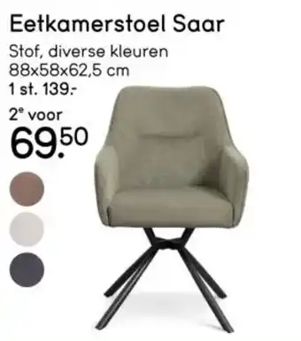 Deze Eetkamerstoel Saar is nu in de aanbieding bij Leen Bakker. Bekijk ook andere lopende acties en bespaar met scherpe prijzen of online deals. Bestel Eetkamerstoel Saar via Leen Bakker website of koop het product met korting in een winkel bij jou in de buurt. Op Folderz.nl verzamelen we dagelijks de beste Eetkamerstoel Saar aanbiedingen. Klik op het belletje om een gratis melding te ontvangen zodra er weer een nieuwe actie of prijsverlaging voor Eetkamerstoel Saar beschikbaar is.Veelgestelde vragen over Eetkamerstoel Saar