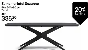 Eetkamertafel Suzanne 200x90 cm Zwart 20% korting