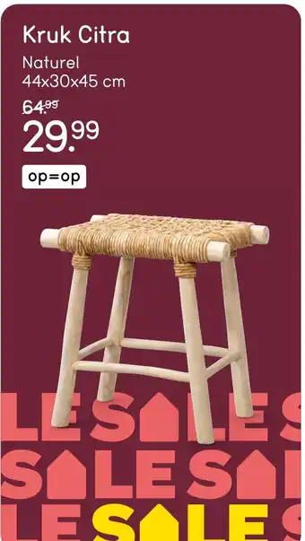 De prijs van de Kruk Citra kan ook teruggevonden worden hierboven op de pagina, samen met de datum van wanneer de aanbieding beschikbaar is. Ook kun je de prijzen in de huidige Leen Bakker folder of op de Leen Bakker website controleren. De aanbiedingen verzekeren je van het kopen van de Leen Bakker producten voor de laagste prijs.