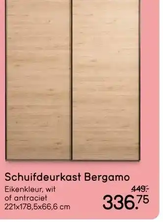 Leen Bakker biedt naast de Schuifdeurkast Bergamo een ruime collectie producten aan. Houd de wekelijkse Leen Bakker folder in de gaten om de beste aanbiedingen en acties te vinden. Naast Schuifdeurkast Bergamo, kunt u ook de volgende aanbiedingen vinden: Schuifdeurkast Genua, aanbieding 2 & aanbieding 3.